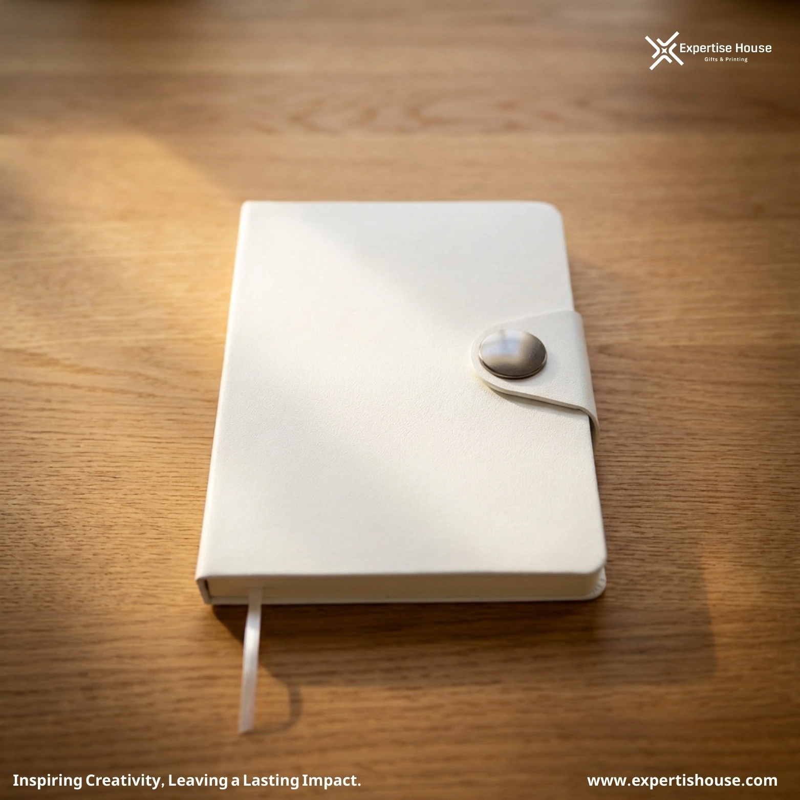 دفتر ملاحظات فاخر أبيض من جلد PU بإغلاق كبس (Snap Closure)