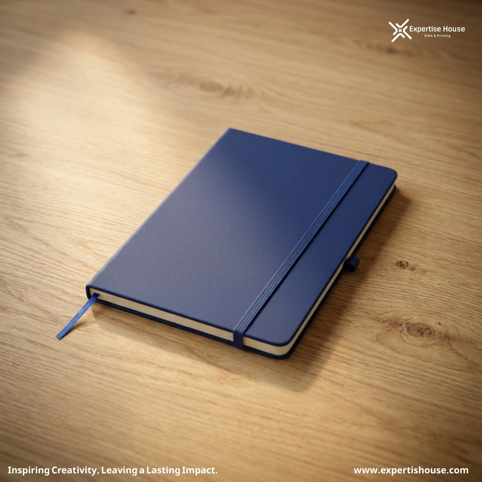 دفتر ملاحظات أنيق باللون الأزرق الملكي مصمم للاستخدام الاحترافي والهدايا корпоративية، يأتي بغلاف صلب من جلد PU عالي الجودة بلمسة مطفية فاخرة تمنحه مظهرًا راقيًا ومتانة عالية، مزود بشريط مطاطي للإغلاق وحامل قلم مدمج لسهولة الاستخدام اليومي، مع زوايا دائرية وخياطة متقنة لتعزيز التحمل.