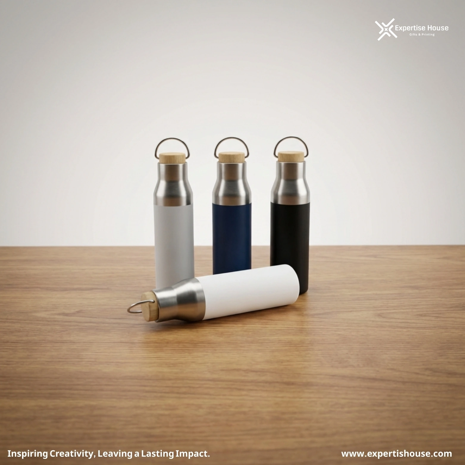 زجاجة أنيقة وعملية مثالية للهدايا الشركاتية، الطباعة الترويجية، الاستخدام المكتبي، السفر، والترطيب اليومي، تجمع بين التصميم العصري والمستدام.