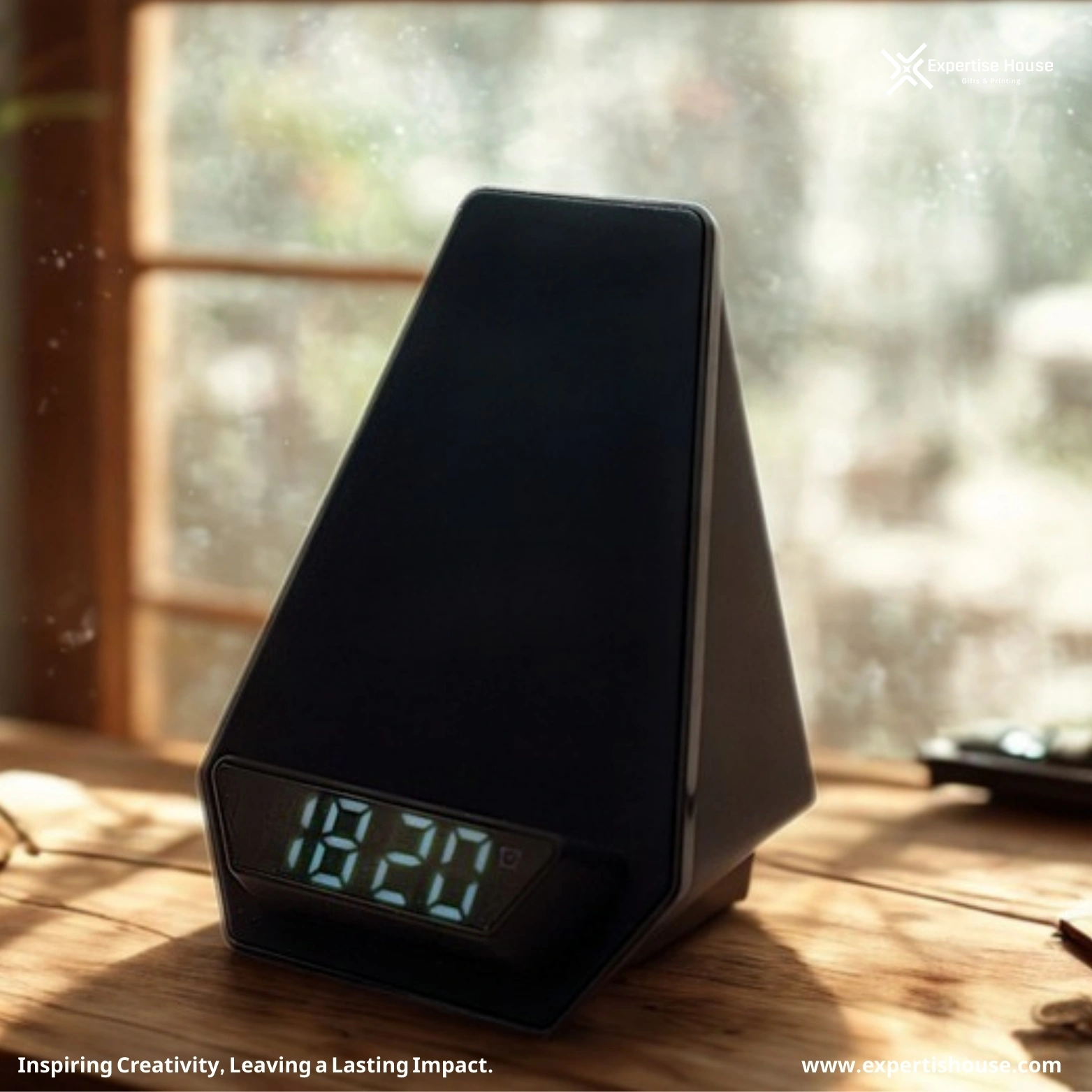 الساعة الرقمية LED الحديثة بشاشة مائلة عاكسة هي إكسسوار مكتبي عصري وأنيق مناسب للمنزل، المكاتب، جانب السرير، الهدايا التنفيذية، والحملات الترويجية للشركات.