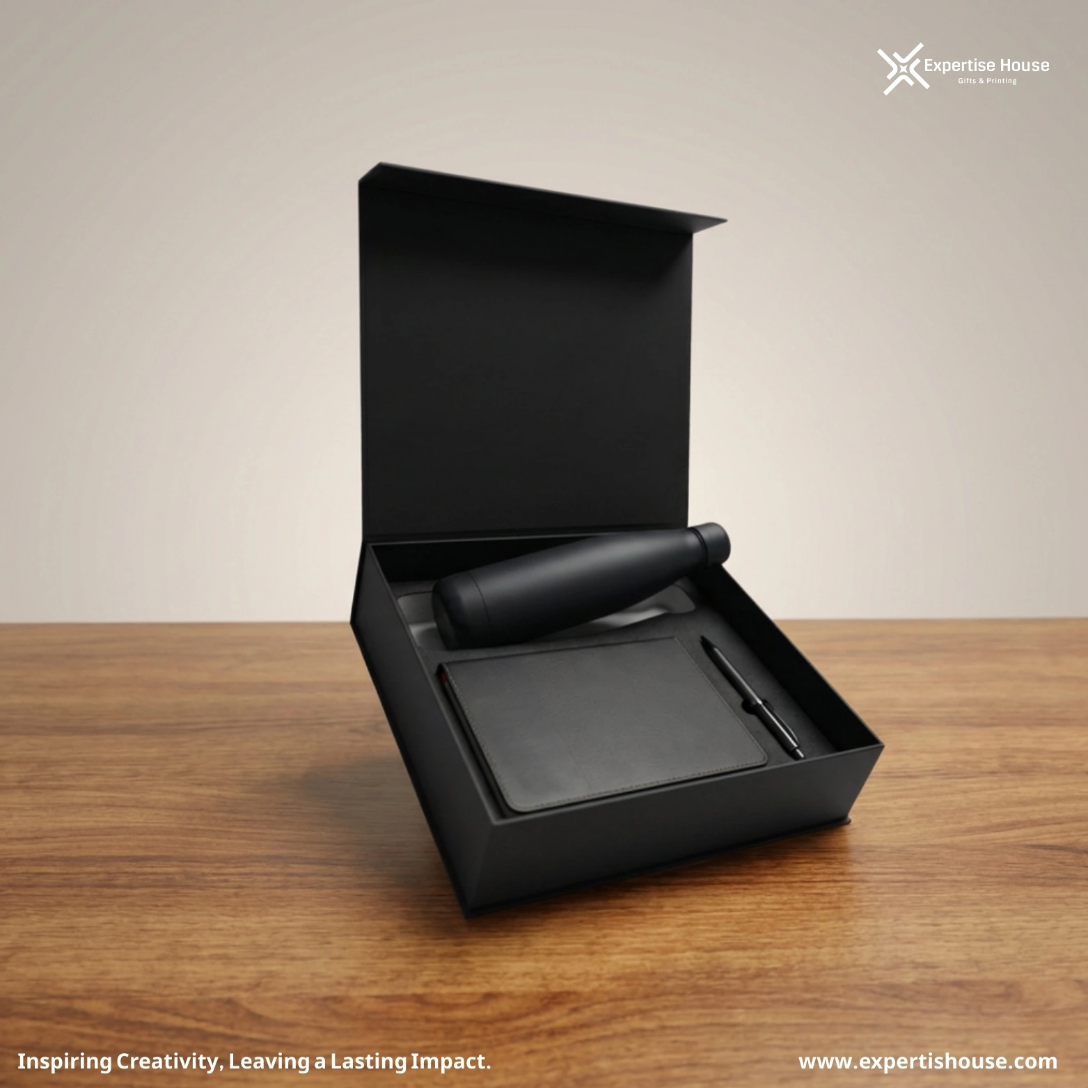 صمم هذا الطقم ليكون الخيار الأرقى لأطقم الترحيب بالموظفين (Welcome Kits) وهدايا الشركات الفاخرة، حيث يأتي داخل صندوق عرض صلب يبرز شعار علامتك التجارية كرمز للجودة والاحترافية.