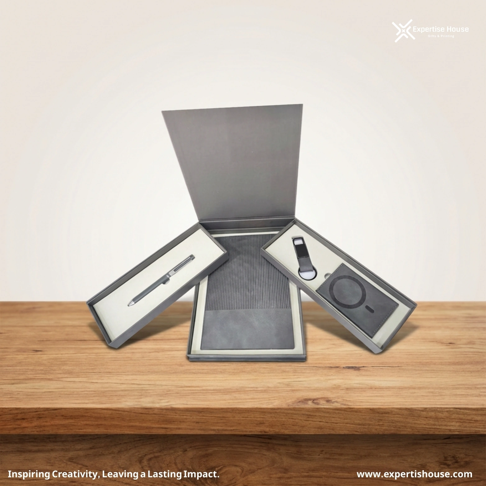طقم هدايا تنفيذية تقنية فاخرة باللون الرمادي