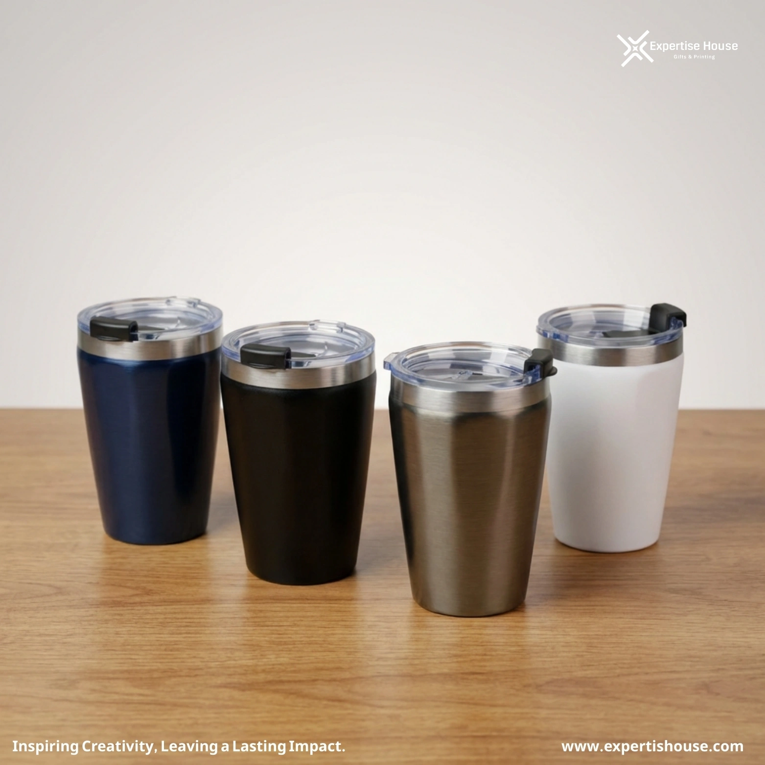متوفرة بألوان أنيقة: الأزرق الداكن، الأسود، الفولاذي، والأبيض لتناسب الهدايا الترويجية والهوية التجارية.